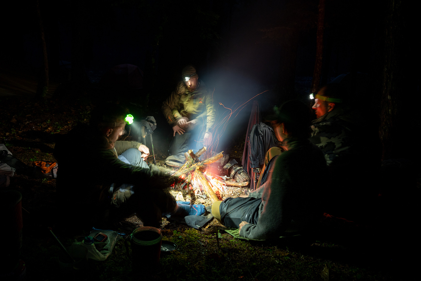 My breath hangs in the air and dances like the Holy Spirit. I remember what it means to be in the wilderness, to lean not on my own understanding. We leave the enchanted forest and fail to find a route up the cliffs. We use the rest of the day to return to Camp 1. Tomorrow we return to the boats to try a new location. We have our tents beneath the pines and we dry our gear around the fire like scarecrows. My fingers are full of thorns and my gloves are soaked. My body is well. My mind is present. My heart is with my family.