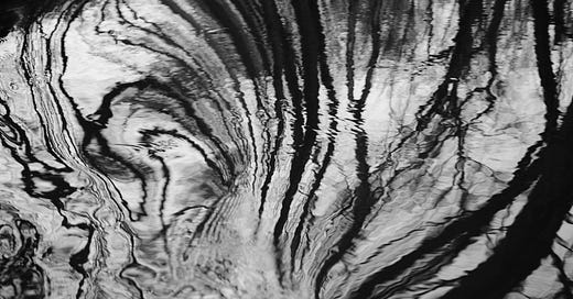 The temperature warmed and the sky calmed, but the ice beneath my feet was still frozen solid. It was clear like an alpine lake and when I looked into the solid depths it was as if the stars above the eye of the storm were frozen in its reflection, ancient constellations and comets from eons gone stuck in place. Beneath the ice was a warm glow, and the light reflected through the ice in coruscating color. At the center of the storm, in the middle of the calm, rose an obelisk that towered like a tree. The light it gathered in its translucent construction shot downward like a pulse and the ice blinked in rhythm. Below the obelisk was a structure that extended deep into the frozen world beneath me. My eyes followed the pulsing light downward until it dissipated in the gloom. At the base of the obelisk I stared downward. The smooth surface below me showed off my reflection. It was the first time in years I could recall the look of my face, the length of my beard, the color of my hair. As the structure pulsated in light my reflection changed to a clean shaven appearance, a desperate pair of eyes more amazed by me than by I by them. My reflection reached out to me, and I extended my arm in turn downward into the ice. My skin carried the warmth through the ice and it slid as a burning stick through the veil between the upper and lower worlds. In the moment I was to touch the hand reaching up at me the shining tower burst with light and I flew backward into darkness, back into the fray of the circling herd. In my hand was a set of coins. I fell backward, deeper, down into the warping ice. A thousand hooves walked over me.
