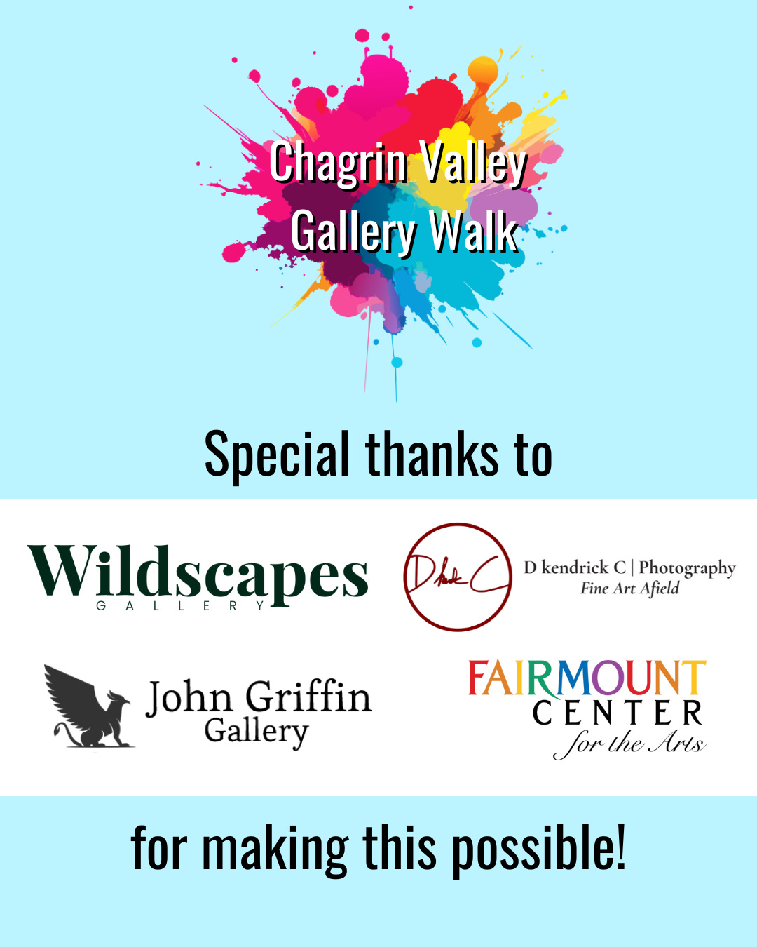 During the month of August, the Fairmount Center for the Arts is organizing a Chagrin Valley Gallery Walk. This is your chance to visit a variety of artists throughout the Chagrin Valley and enjoy the wonderful community we’re building together.